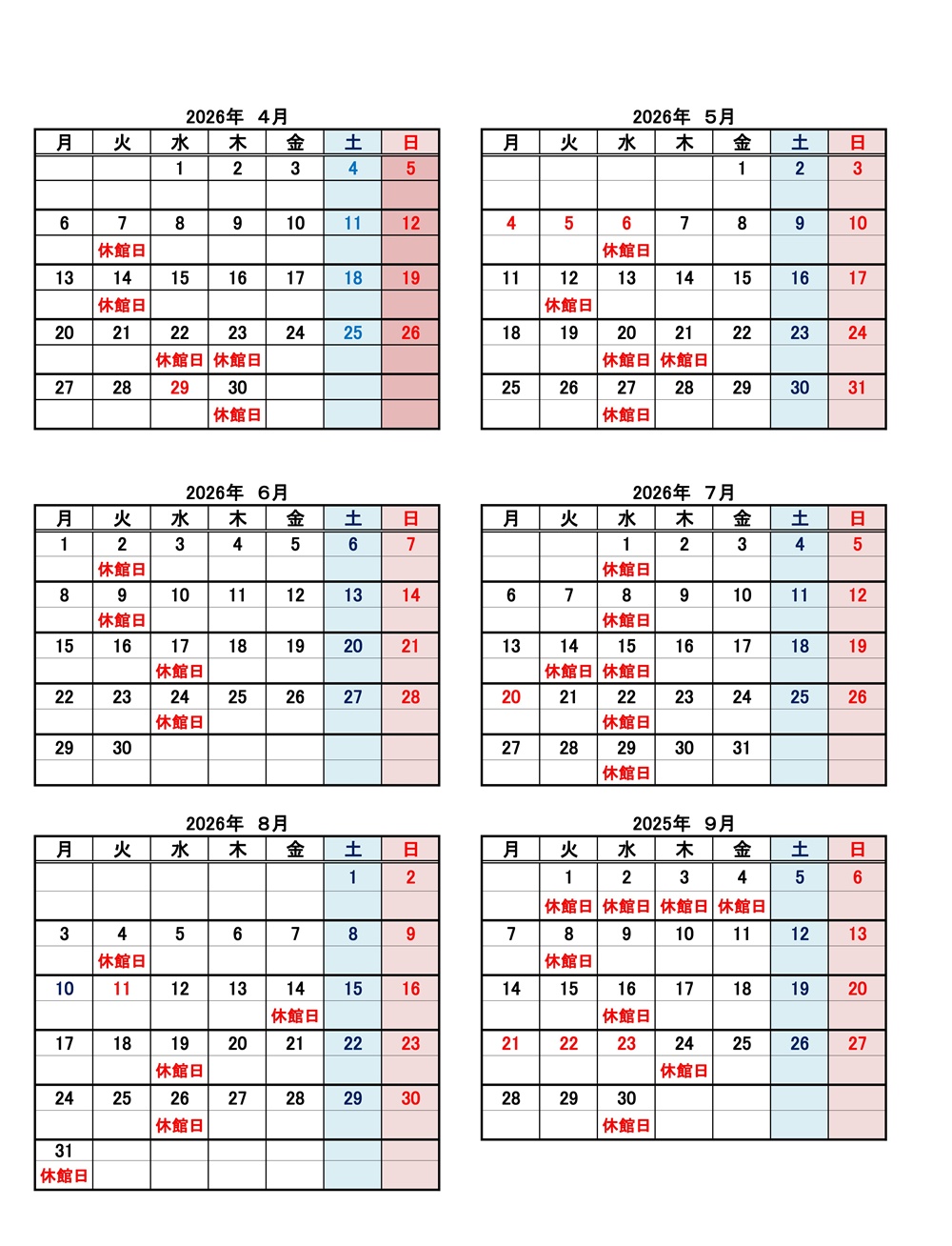 ※今後の状況により休館日の日程に追加・変更がある場合がございます。
